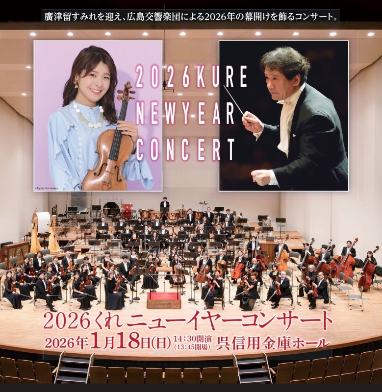 2026年幕開けは広島交響楽団の迫力のあるサウンドに、日本を拠点に、世界各地で演奏活動を行う廣津留すみれを迎え、末廣誠の指揮で華麗に彩る新春の調べをお届けします。
